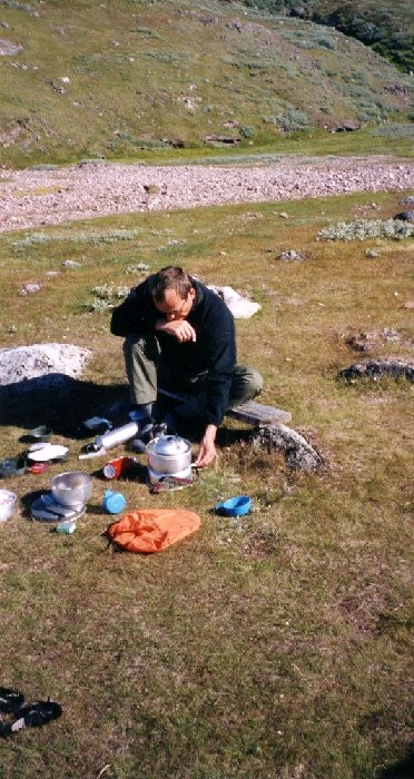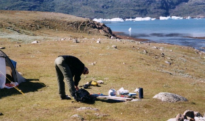 From Qassiarsuk we walked to Tasiusaq (6 kilometers) and followed the coastline about 2 kilometers in north west direction. Here we found a perfect camp site.