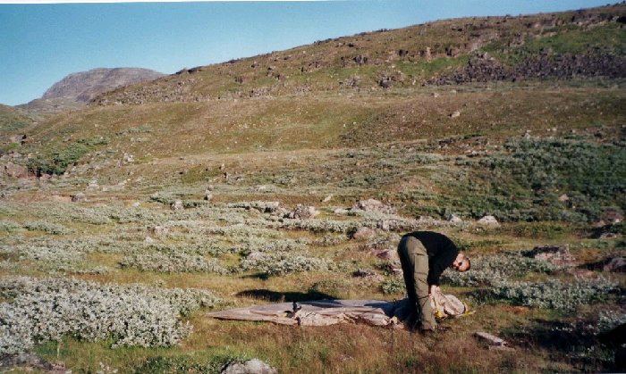 After a couple of days we moved our camp to the side of the river from the lake 380 south west of Igaliku. The area south of Igaliku was very steep.